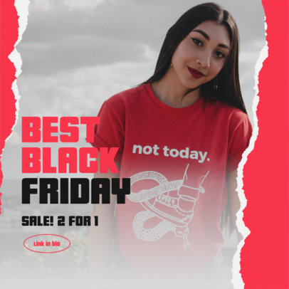 Instagram Post Template for a 2x1 Black Friday Offer on Streetwear