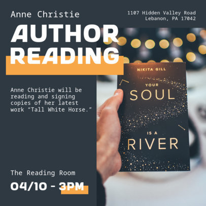 Instagram Post Creator Featuring a Promotional Picture for a Book's Author Reading