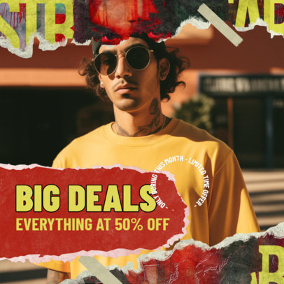 Instagram Post Template for an Apparel Store Sale With a Ripped-Paper Aesthetic