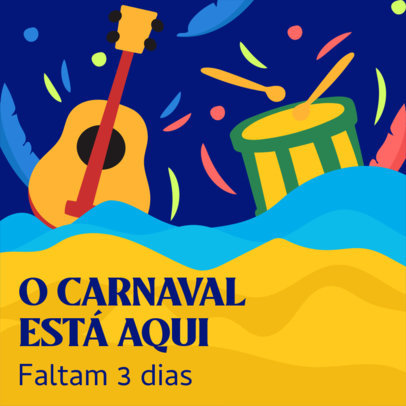 Instagram Post Maker for a Brazilian Carnival Livestream with Illustrated Musical Instruments
