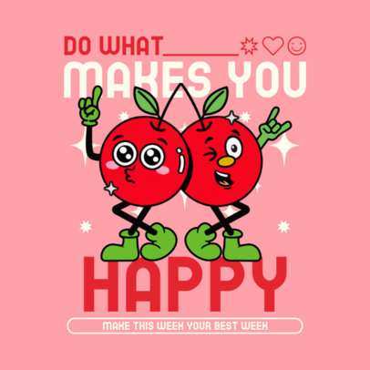 Instagram Post Design Template with a Happy Quote Featuring Two Cartoonish Cherries