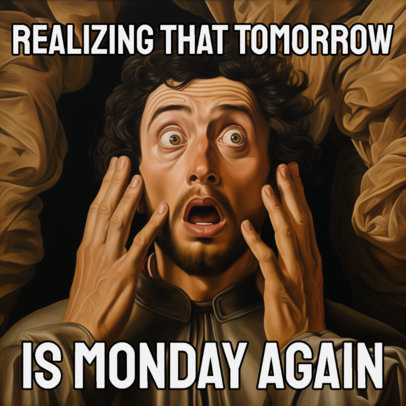 Instagram Post Generator with a Classic Painting of a Surprised Man with a Funny Quote