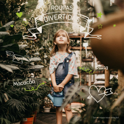 Instagram Post Template for a Children's Clothing Brand Featuring Illustrated Graphics