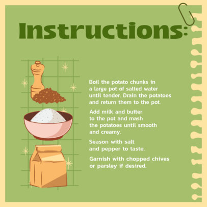 Try any of these Instagram post design creators featuring instructions to prepare delicious Thanksgiving meals. They also feature illustrated food like turkey, cranberries, potatoes, and more. Start now!