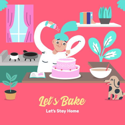 Instagram Post Creator with the Illustration of a Woman Baking at Home