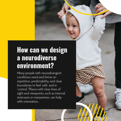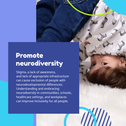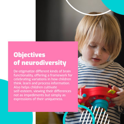 Check out any of these Instagram post design templates for Neurodiversity Celebration Week makers featuring pictures of neurodivergent children, as well as informative text and colorful backgrounds.