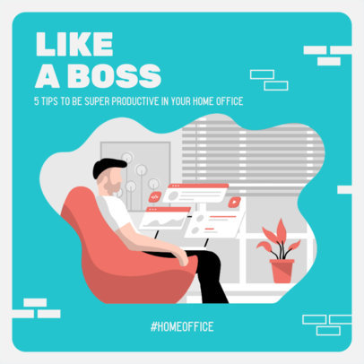 Instagram Post Maker Featuring an Illustration of a Man Doing Home Office