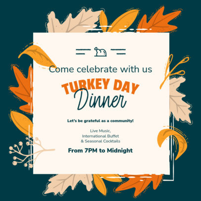 Instagram Post Creator Featuring Illustrated Autumn Leaves for a Thanksgiving Dinner