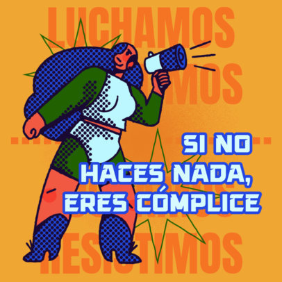 Feminist-Themed Instagram Post Maker Featuring an Illustrated Female Protester