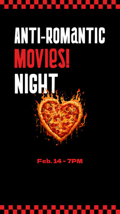 Instagram Story Template for an Anti-Valentine's Movie Night Featuring a Flaming Pizza