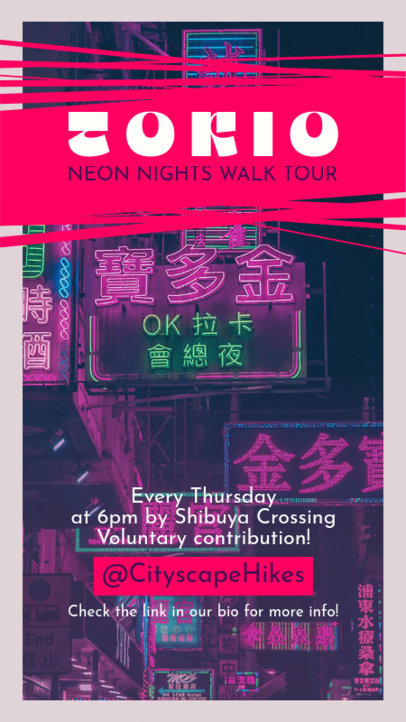 Instagram Story Generator Promoting a Tokyo's Neon Nights Walk Tour