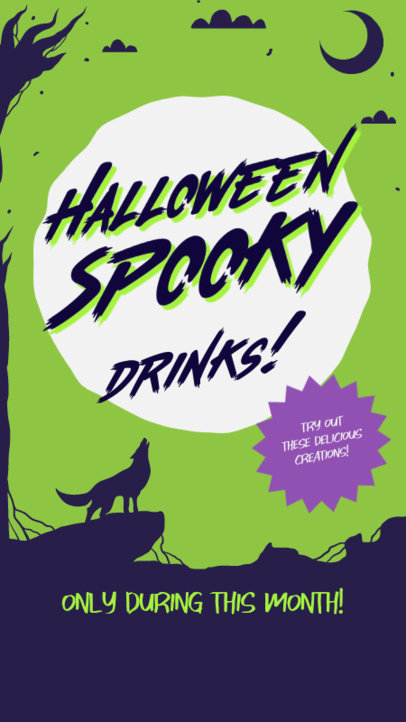 Instagram Story Creator Featuring an Illustrated Howling Wolf for a Halloween-Season Drinks Ad