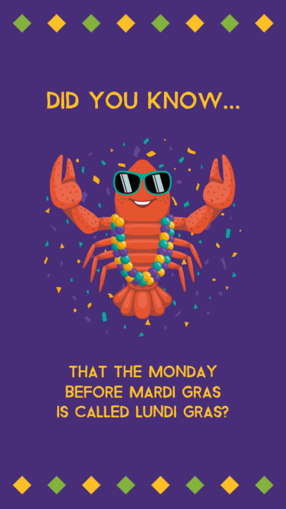Instagram Story Creator Featuring an Illustrated Lobster with a Mardi Gras Fun Fact
