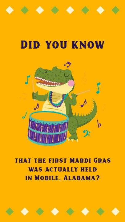 Mardi Gras-Inspired Instagram Story Maker Featuring a Cartoonish Drummer Crocodile