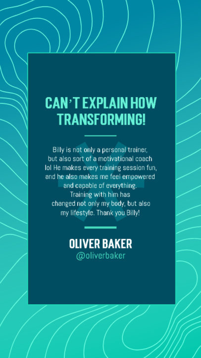 Instagram Story Design Maker to Promote a Customer Testimonial of a Personal Trainer