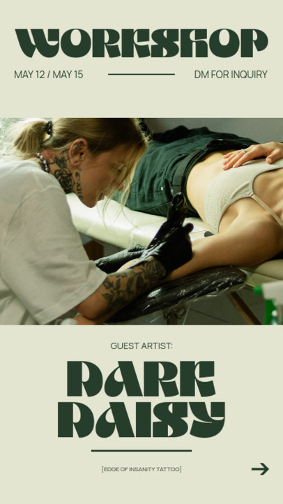Instagram Story Generator Featuring a Tattoo Artist Workshop Ad