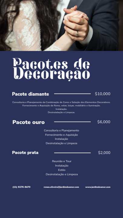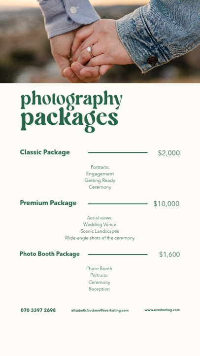 Instagram Story Creator Featuring a List of Wedding Photography Packages