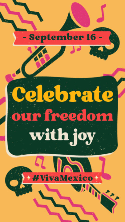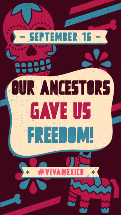 Instagram Story Template with Illustrated Skulls and Pinatas for a Mexican Independence Commemoration