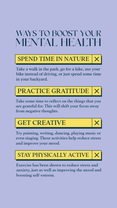 Awareness Instagram Story Template Featuring Tips to Improve Mental Health