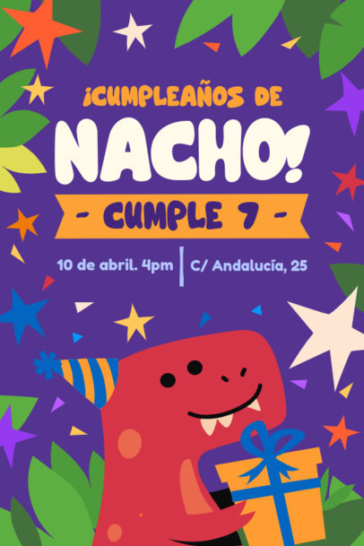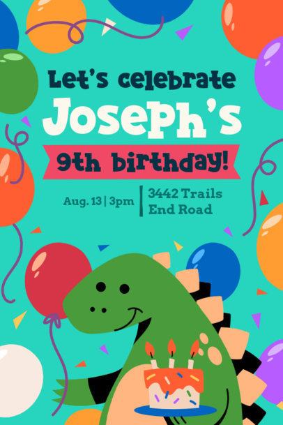 Invitation Generator Featuring a Colorful Layout and a Dino for a Kid's Bday Party
