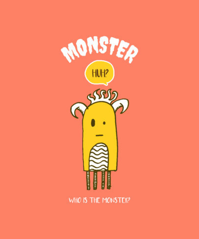 Kids T-Shirt Design Template Featuring a Funny Monster
