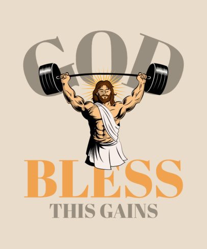T-Shirt Design Creator for Gym Rats Featuring an Illustrated Jesus Lifting a Barbell
