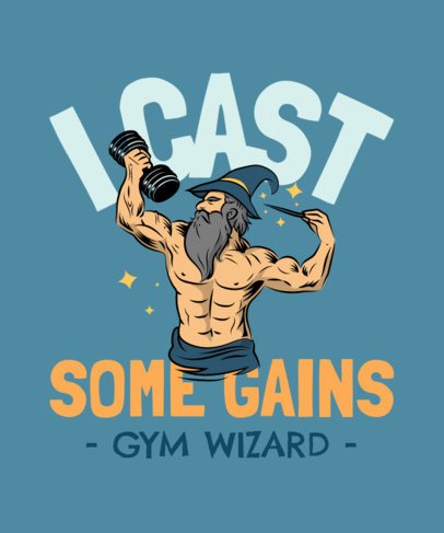 Gym-Inspired T-Shirt Design Template with a Muscular Wizard Lifting a Dumbbell