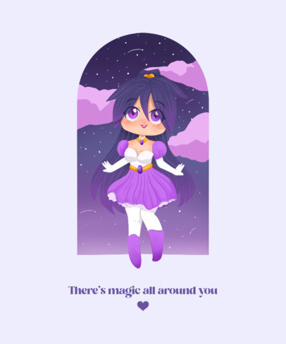 T-Shirt Design Template With a Magic Theme Featuring a Cute Illustration of a Girl