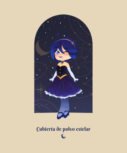T-Shirt Design Maker Featuring an Illustration of a Magical Girl Over an Outer Space Background