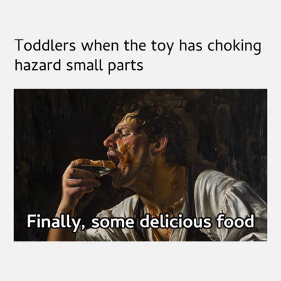 Instagram Post Template with a Classic Painting of Food and a Meme-Inspired Quote