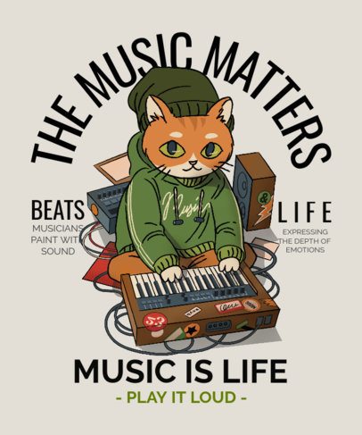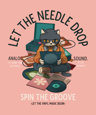 T-Shirt Design Generator with an Illustrated Cat with Retro Vinyl Discs