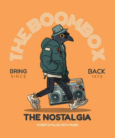 T-Shirt Design Maker Featuring a Cartoonish Bird with a Boombox
