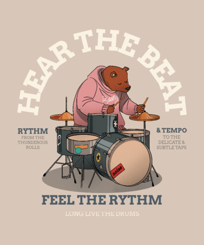 T-Shirt Design Template with an Illustrated Bear Playing the Drums