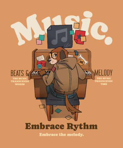 T-Shirt Design Maker Featuring a Cartoonish Dog Playing Piano