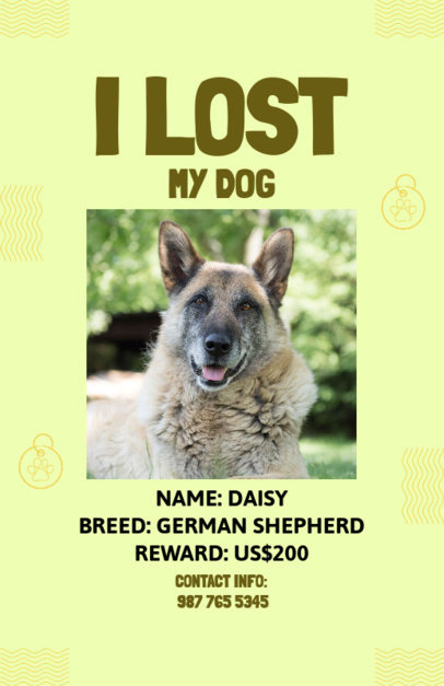Lost Dog Flyer Design Template Featuring a Photo and Contact Info