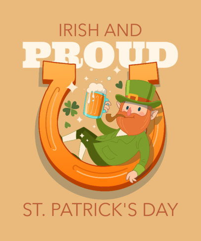 St Patrick's Day-Themed T-Shirt Design Template Featuring a Golden Horseshoe with a Leprechaun