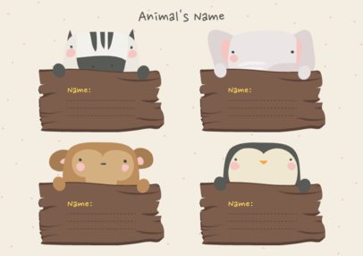 Name Tag Sticker Generator for Preschool Students Featuring Cute Animals