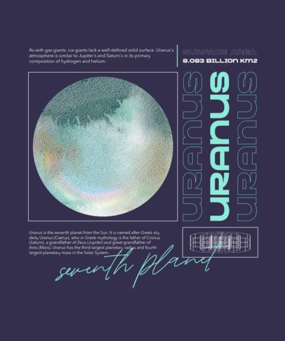 T-Shirt Design Template Featuring a Uranus Graphic for National Space Day