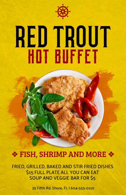 Design a flyer for your seafood restaurant in just minutes using this online flyer maker. This flyer template is so easy to customize you don't even need any design software or special skills. This flyer design template is perfect for your seafood restaurant or grill and can be used to advertise promotions, food specials, or your happy hour specials. You can choose an icon from the many provided, including crabs, lobsters, shrimp, turtles, seashells, and much more! This flyer template also includes images of seafood dishes to make your flyer design even more appetizing.