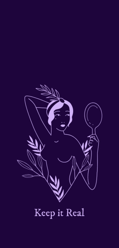 Illustrated Phone Case Template with a Woman Looking Herself in the Mirror
