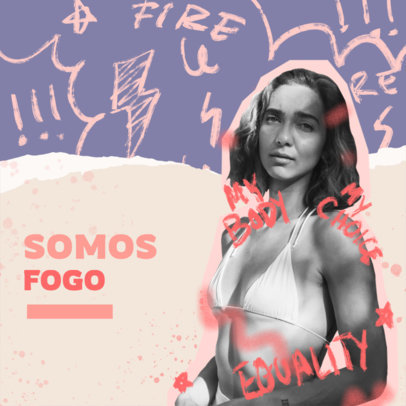 Podcast Cover Design Template Featuring a Feminist Theme and a Scrapbook Aesthetic