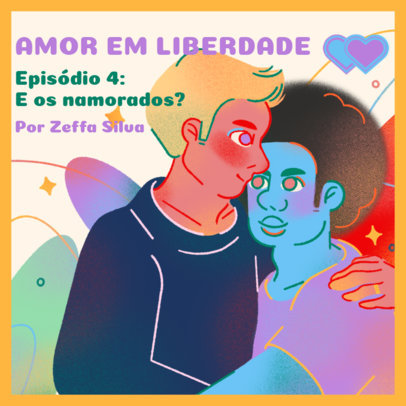 Podcast Cover Design Template Featuring Colorful Illustrations of LGBT Couples