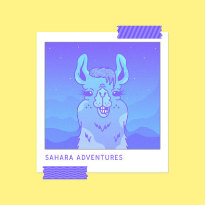 Cover Template Inspired in Polaroid Featuring a Llama for a Lo-Fi Music Album