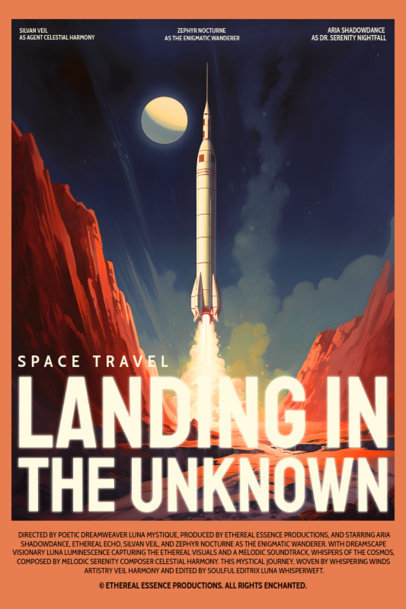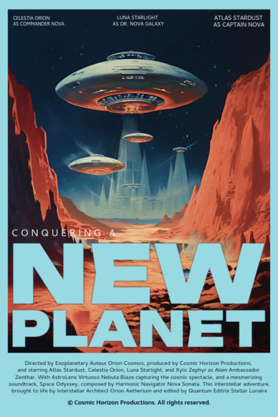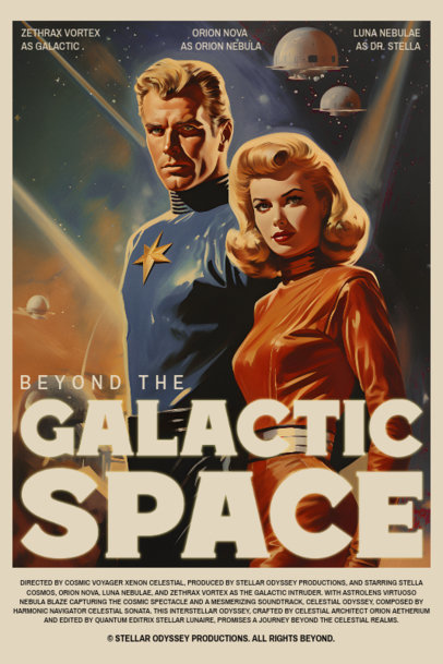 Create a unique and eye-catching art print with our Poster Design Generator, perfect for sci-fi lovers and inspired by retro alien movies. Featuring stunning illustrations of space and aliens, this POD poster maker is a must-have for any sci-fi fan.