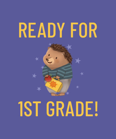 Illustrated T-Shirt Design Maker Featuring a Hedgehog On His First Day of School