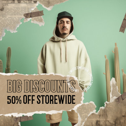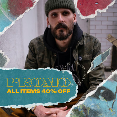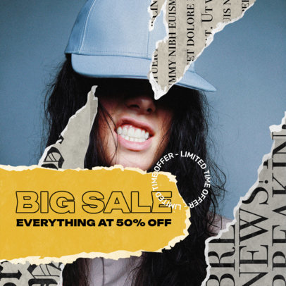 Instagram Post Template for an Apparel Store Sale With a Ripped-Paper Aesthetic