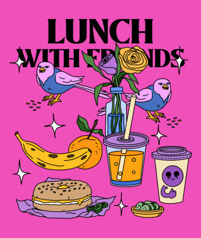 Tote Bag Design Template Featuring a Psychedelic Color Scheme and Food Illustrations