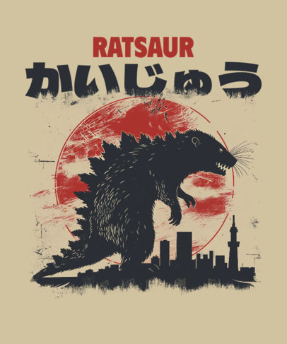 T-Shirt Design Generator Featuring a Pug Graphic Inspired by a Kaiju