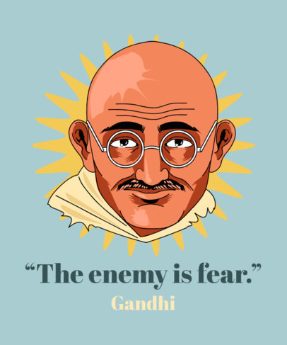 Illustrated T-Shirt Design Template Featuring a Gandhi Quote