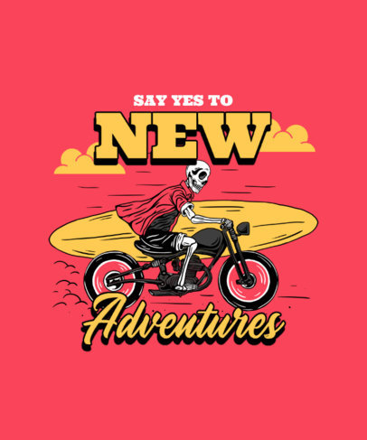 T-Shirt Design Template Featuring a Skeleton on a Motorbike Holding a Surfboard